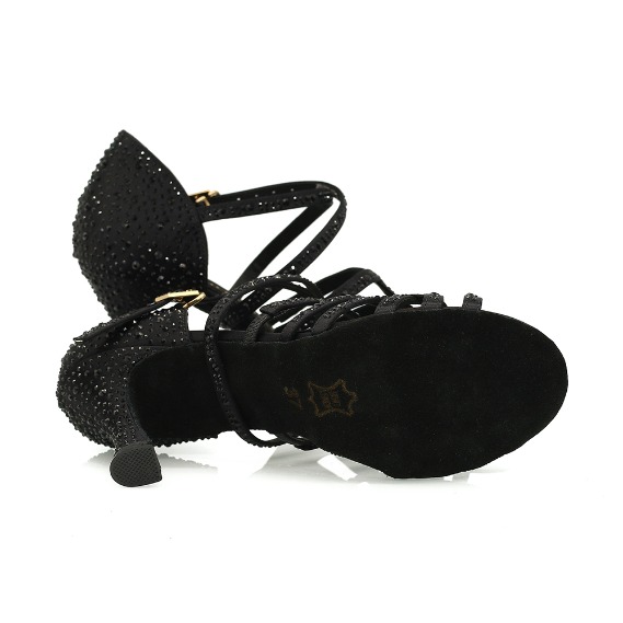Dansschoenen van satijn met gekruiste band, 6 banden bedekt met kristallen, antishock binnenzool uiterst comfortabel, geschikt voor alle soorten dansstijlen.